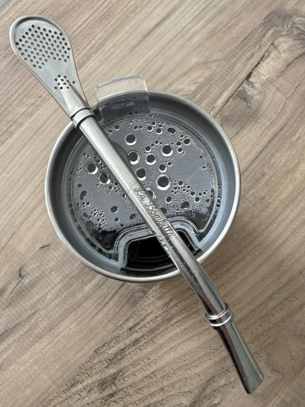 Étape 3 : Placer sa bombilla tout en bouchant son extrémité puis verser l'eau chaude.